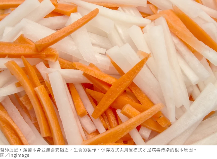 這起事件也引起網友們討論,有些人開始對蘿蔔這個食材產生擔憂,也有人感到困惑,因為不是都說蘿蔔本身能「抗菌」嗎?對此,Otonanswer編輯部就請教到消化內科醫師安江千尋,進一步解釋食用蘿蔔的注意事項。 蘿蔔不是抗菌嗎?為何還會造成食物中毒醫師表示,蘿蔔、芥末等十字花科蔬菜含有異硫氰酸酯,這種天然有機化合物是辛辣味道的來源外,也的確具有抗發炎、抑制細菌生長的作用。 然而,這並不代表蘿蔔有殺菌消毒的效果,蘿蔔無法消滅與預防造成食物中毒的諾羅「病毒」,認為它能當作殺菌食品原料的想法是錯誤的,食品衛生安全仍需仰賴食物的新鮮度、衛生習慣和妥善保存。 蘿蔔泥很容易造成食物中毒嗎?關鍵不在於蘿蔔本身,在於蘿蔔泥作爲生吃的食物,在製作、運輸或裝盤的過程中可能會被人源性諾羅病毒污染,而又缺乏能殺死病原體的烹調過程。 諾羅病毒感染力相當強,即使極少量也能造成感染,而且能在冷凍或60°C高溫下存活,餐廳和加工食品工廠只要某個環節不當,污染就可能會迅速蔓延。 所以愛知縣這起蘿蔔泥的大規模食物中毒事件,發生關鍵在於「生食、大量食用」,以及居酒屋與燒肉店「與人互動頻繁的供餐方式」。醫師提醒,無論在家中或外出用餐,都要注意供餐人員的健康狀況,仔細洗手,將餐具分開消毒,並避免在備料時將食材長時間置於室溫中。